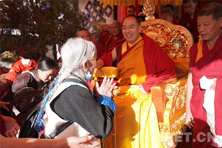 中國西藏網(wǎng)訊 11月13日至14日,全國政協(xié)常委、中國佛教協(xié)會副會長、中國佛協(xié)西藏分會會長班禪額爾德尼?確吉杰布在西藏日喀則市扎什倫布寺多加大院為信教群眾摸頂賜福,這是近年來規(guī)模最大的一次班禪摸頂賜?;顒印D為班禪摸頂賜福 攝影:王淑(中國西藏網(wǎng) 記者/王淑 賈華加)