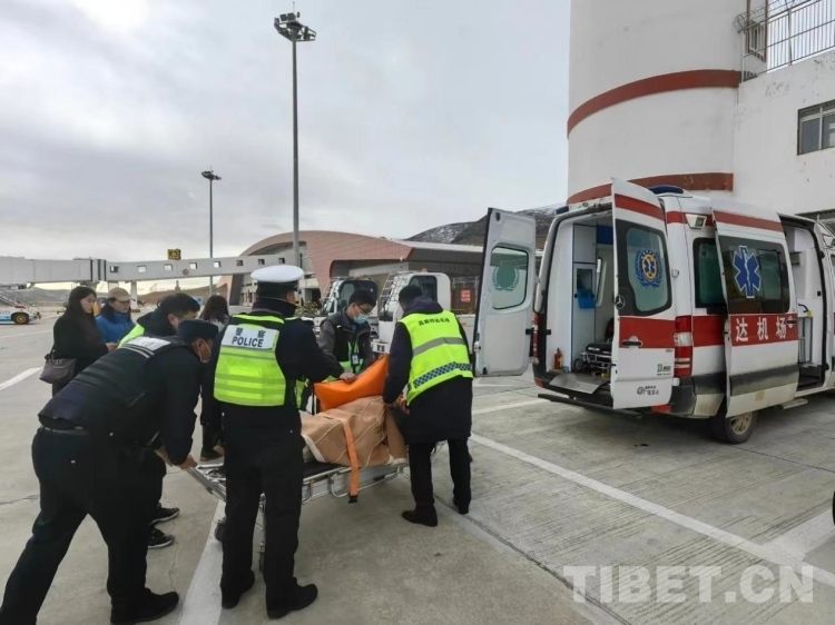 圖為邦達(dá)機(jī)場(chǎng)工作人員將嘎吉送上機(jī)場(chǎng)救護(hù)車(chē)