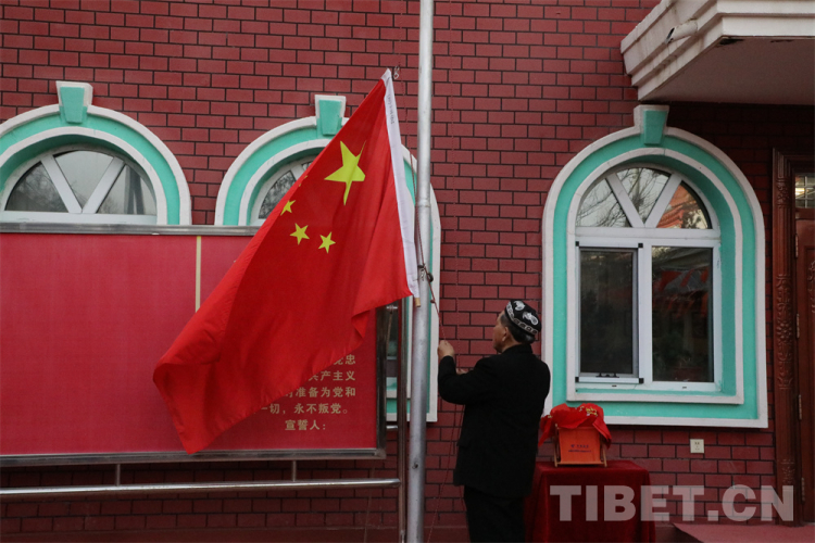 中國西藏網(wǎng)訊 日常的清晨,走在哈爾墩社區(qū)的街道上,推開街道拐角的一處紅色大門,就能看到一個平靜整潔的小院。沙勒克江·依明老人和他的老伴早早地站在小院中間,微笑著迎接走訪團隊的到來。他們的右手邊是一根锃亮的銀色升旗桿,旗桿上已經(jīng)升起的五星紅旗在清晨的微風里輕輕舒展開來。