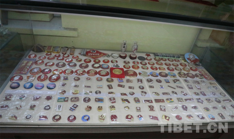 圖為沙勒克江·依明老人收藏的各類關于毛主席的紀念像章 攝影:王妍丹