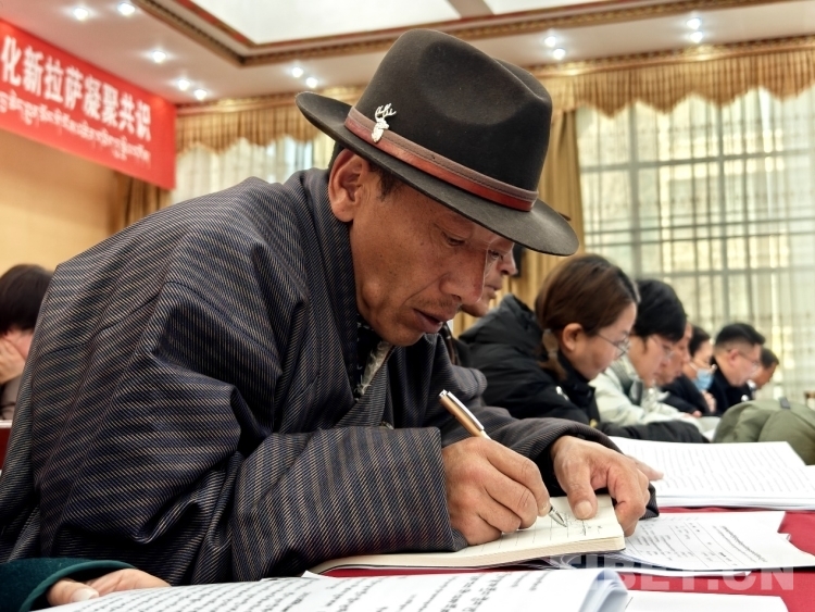 圖為開幕會現(xiàn)場政協(xié)委員認(rèn)真做著筆記 攝影:次旦拉姆