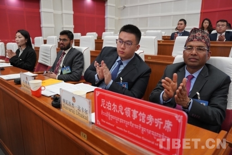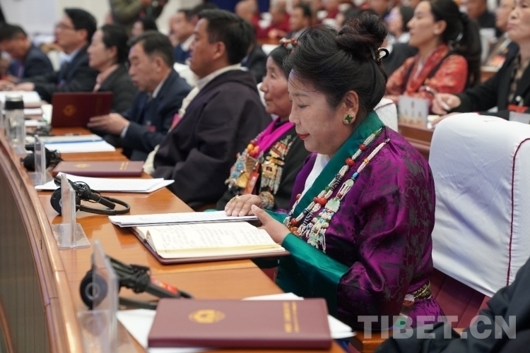 圖為開幕會現(xiàn)場委員在認(rèn)真審閱藏文版會議資料 攝影:次旦拉姆