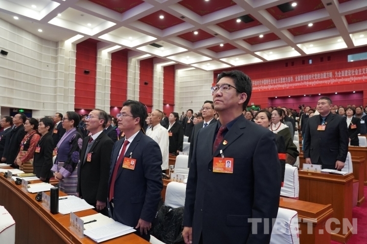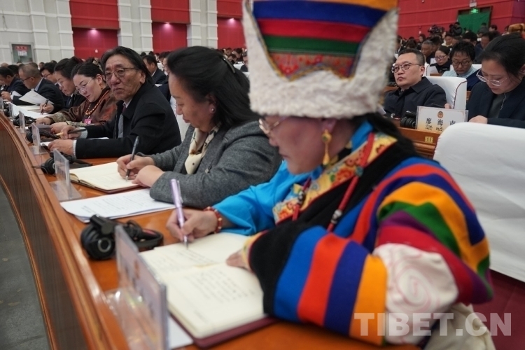 圖為開幕會現(xiàn)場政協(xié)委員在認(rèn)真聽取各項(xiàng)報(bào)告 攝影:次旦拉姆