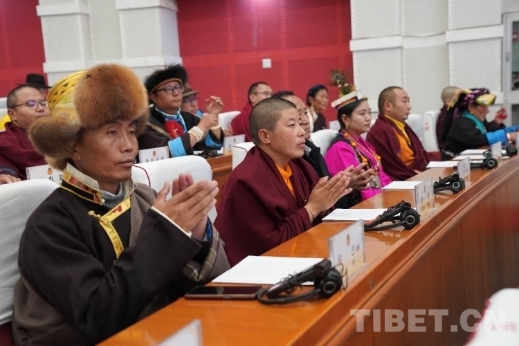 圖為開幕會現(xiàn)場委員在認(rèn)真聽取各項(xiàng)報(bào)告 攝影:次旦拉姆