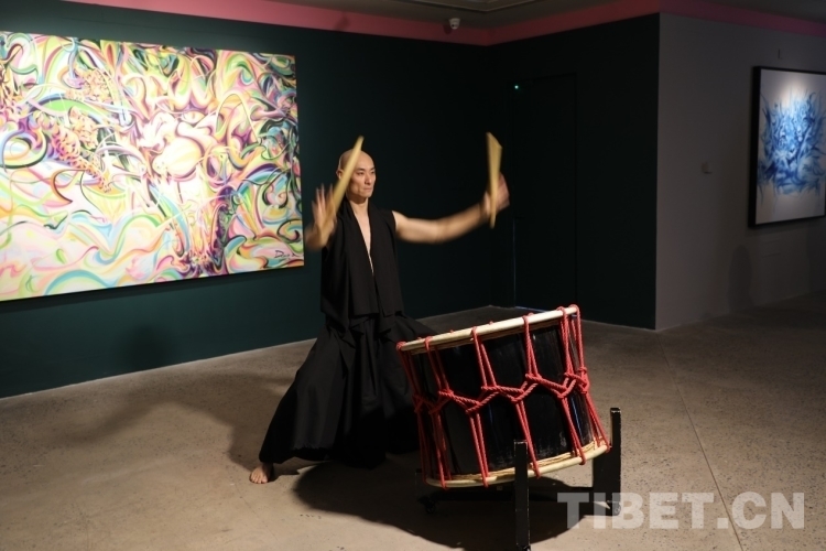 中國(guó)西藏網(wǎng)訊 1月14日,藝術(shù)家DUMA個(gè)展“豹變(FACE/OFF)”于北京觹堂文化智庫(kù)一蓮藝術(shù)空間正式開(kāi)幕,開(kāi)幕式以傳統(tǒng)大鼓《歡快的吶喊》開(kāi)場(chǎng)。