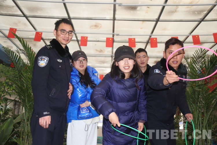 圖為來隊(duì)家屬一起在陽光房玩套圈游戲 攝影:鄭鵬飛