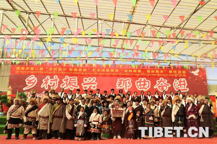 中國西藏網(wǎng)訊 2月10日,中國西藏信息中心“新春走基層”青藏線采訪組一行,來到西藏自治區(qū)那曲市安多縣灘堆鄉(xiāng),適逢當?shù)卦谂e辦灘堆鄉(xiāng)第二屆“鄉(xiāng)村振興 那曲奮進”藝術成果展暨“龍和新春、福祈新歲”聯(lián)歡活動。采訪組一行來到鄉(xiāng)政府對面的灘堆鄉(xiāng)文化站,記者在現(xiàn)場看到許多穿著具有當?shù)孛褡逄厣椀娜嗽诖司奂?。在好奇心的驅使下,?jīng)詢問當?shù)馗刹坎胖?,為喜?024春節(jié)和藏歷新年,感激黨和國家的關心關懷,歌頌如今來之不易的幸福生活,鄉(xiāng)村文藝隊特此精心準備了文藝節(jié)目,以嶄新的面貌和昂揚的精神展現(xiàn)新時代牧民群眾的精神風貌和幸福生活。