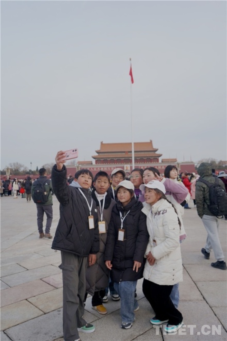 中國(guó)西藏網(wǎng)訊 “我們來(lái)自西藏,我在天安門廣場(chǎng)看升旗,特別激動(dòng),特別開心,特別感動(dòng)!”來(lái)自西藏自治區(qū)日喀則市邊境縣學(xué)生赴北京參觀研學(xué)的22名學(xué)生激動(dòng)地?cái)D進(jìn)老師的手機(jī)鏡頭高聲喊著。