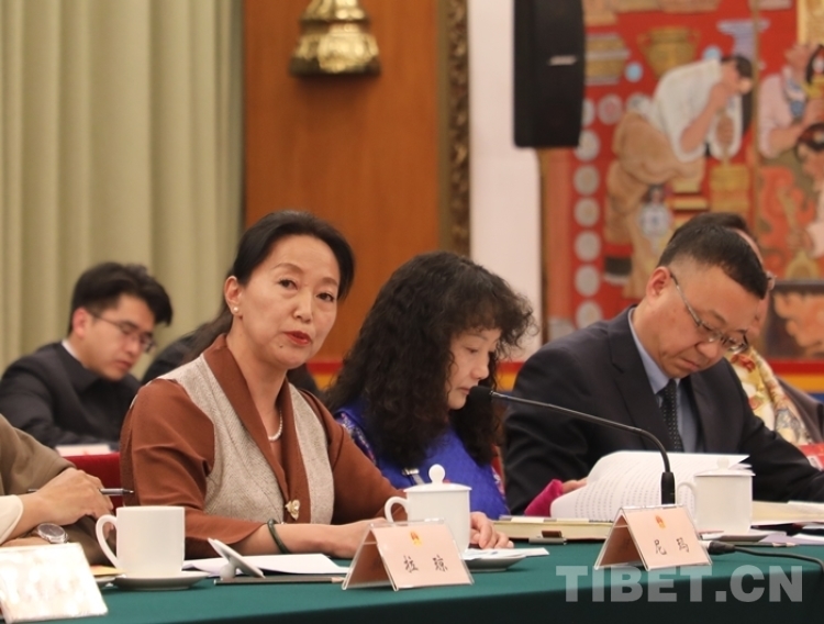 圖為尼瑪在十四屆全國(guó)人大二次會(huì)議西藏代表團(tuán)開放團(tuán)組會(huì)議上發(fā)言