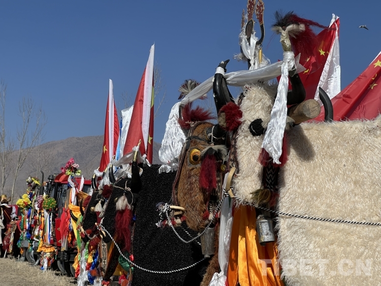 當(dāng)天上午,茶巴朗村的村民們穿著極具民族特色的節(jié)日盛裝,男人們開著裝扮一新的拖拉機(jī),婦女們手捧吉祥切瑪,帶上青稞美酒、酥油糌粑、瓜果“卡塞”以及各類供品等來到田間地頭,迎接一年一度的“春耕節(jié)”。