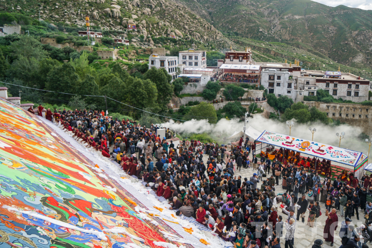 圖為2023年拉薩雪頓節(jié)哲蚌寺展佛現(xiàn)場。雪頓節(jié)距今已有近千年歷史,近年來雪頓節(jié)在各級政府的保護(hù)和發(fā)展中,已從單純的民俗文化節(jié)日成為集傳統(tǒng)展佛、體育競技、文藝匯演、經(jīng)貿(mào)洽談、商品展銷、旅游推介、民俗體驗等為一體的復(fù)合型節(jié)日。 攝影:趙振宇