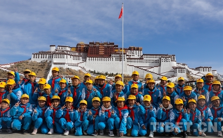 國(guó)旗下,拉薩各族各界干部群眾衷心祝愿?jìng)ゴ笞鎳?guó)更加繁榮昌盛,祝愿西藏的明天更加美好。