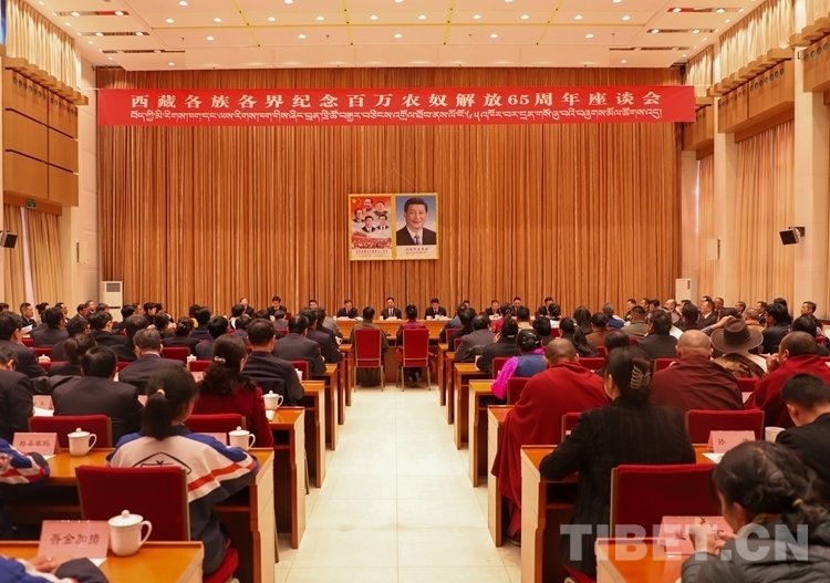 中國(guó)西藏網(wǎng)訊 3月28日,西藏各族各界紀(jì)念百萬(wàn)農(nóng)奴解放65周年座談會(huì)在拉薩舉行。會(huì)上,翻身農(nóng)奴代表、愛國(guó)統(tǒng)戰(zhàn)人士及其后代代表、學(xué)生代表、黨外知識(shí)分子代表、宗教界代表等紛紛發(fā)言。