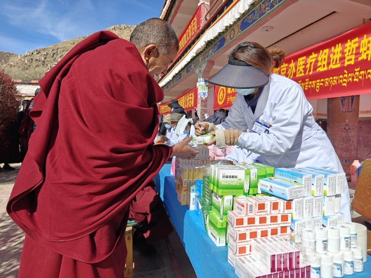 中國西藏網(wǎng)訊 “收到今天有北京醫(yī)療專家過來義診的消息,我一大早就過來了。身體平時(shí)沒什么大的毛病,就想著借此機(jī)會(huì)檢查一下,畢竟年紀(jì)大了?!?6歲的哲蚌寺僧人加參高興地說。為了讓哲蚌寺僧人和周邊民眾在家門口就能享受到優(yōu)質(zhì)的醫(yī)療服務(wù),傳播健康生活理念,提高健康意識(shí),3月29日,西藏自治區(qū)人民政府駐北京辦事處(以下簡稱:京辦)組織北京11家重點(diǎn)醫(yī)院的12名醫(yī)療專家走進(jìn)位于拉薩市城西的哲蚌寺,開展“踔厲奮發(fā)擔(dān)使命 送醫(yī)進(jìn)藏暖民心”義診活動(dòng),得到僧人和群眾的一致稱贊。