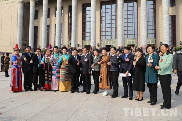 圖為2024年全國政協(xié)會(huì)議閉幕后,邊巴拉姆(左五)與全國政協(xié)委員們在人民大會(huì)堂前留影 攝影:王茜