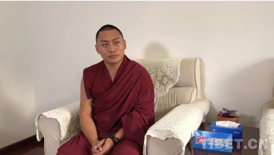 圖為根培活佛正在接受中國(guó)西藏網(wǎng)的采訪