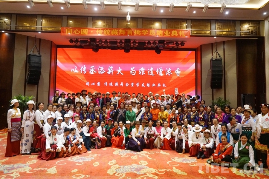 中國西藏網(wǎng)訊 5月9日,由同心圓傳統(tǒng)藏舞會堂舉辦的“為傳承添薪火 為非遺增濃香”傳統(tǒng)藏舞首批學(xué)員結(jié)業(yè)典禮在陜西西安舉行。22名學(xué)友經(jīng)過一年多的辛勤努力終于迎來了結(jié)業(yè)典禮,同時現(xiàn)場還為9名優(yōu)秀學(xué)員頒發(fā)推廣人證書。