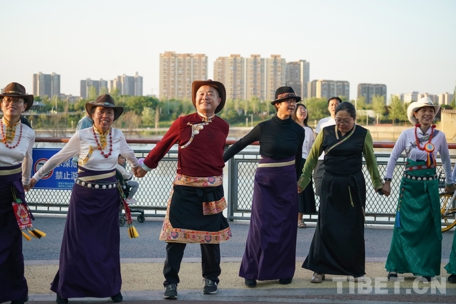 中國西藏網(wǎng)訊 近日,由同心圓傳統(tǒng)藏舞會堂舉辦的傳統(tǒng)藏舞推廣展演活動在西安浐灞半島舉辦,來自西藏、青海、四川等地的多位藏舞推廣傳承人、民間音樂創(chuàng)作人與藏舞愛好者齊聚西安,他們身著藏族傳統(tǒng)服飾,邊唱邊跳,《歡迎你們到來》《吉祥的哈達(dá)》《放牧歌》……一曲接著一曲,大家在歌聲和歡呼聲中感受著藏族文化的無限魅力?。ㄖ袊鞑鼐W(wǎng) 記者/呂靜 陳浩力)