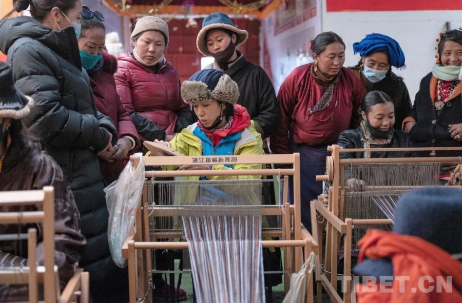 2020年,“小巷三尋”公司負責(zé)人鄭芬蘭帶領(lǐng)10人團隊、帶著50臺新式織布機,跨越4000多公里的青藏線,從杭州出發(fā)前往西藏那曲,為那曲當(dāng)?shù)啬撩袢罕妿ジ蝇F(xiàn)代化的生產(chǎn)工具。經(jīng)過一路顛簸,一到那曲,鄭芬蘭和隊員們便克服海拔4500米高原反應(yīng)帶來的身體不適,開始組裝織布機。