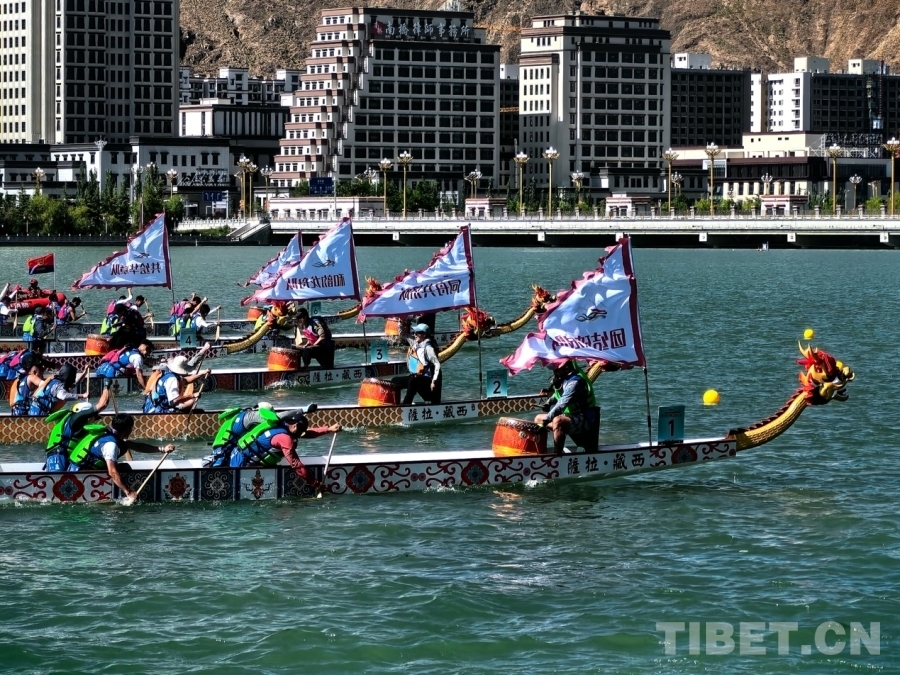 據(jù)了解,本次賽事系西藏首次舉辦,也是國(guó)內(nèi)海拔最高的牛皮船(龍舟)賽,以“鑄牢中華民族共同體意識(shí),弘揚(yáng)中華民族傳統(tǒng)體育文化”為主題,邀請(qǐng)了來自遼寧、湖北、湖南、四川、云南、貴州和廣西的30名龍舟運(yùn)動(dòng)員,與西藏自治區(qū)30名龍舟運(yùn)動(dòng)員以及40名牛皮船運(yùn)動(dòng)員進(jìn)行同場(chǎng)競(jìng)技。最終,并肩前行隊(duì)、齊心破浪隊(duì)、和韻龍舟隊(duì)獲得龍舟賽前三名,提槳破水隊(duì)、奔跑吧羚羊隊(duì)、龍翔喜馬隊(duì)獲得牛皮船賽前三名。