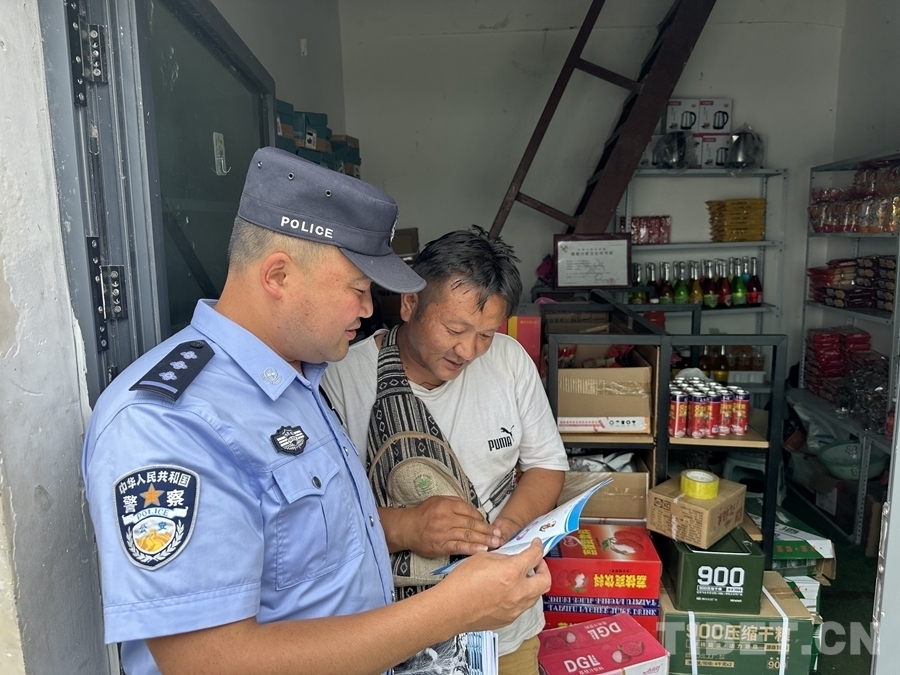 圖為聶拉木出入境邊防檢查站民警向口岸個(gè)體戶宣講禁毒知識(shí) 攝影:軒紅偉