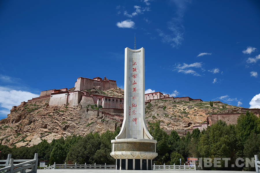圖為江孜宗山英雄紀(jì)念碑,背后即是江孜宗山抗英遺址(2019年拍攝) 攝影:楊月云