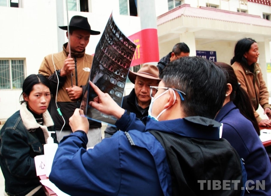 圖為2024“同心·共鑄中國(guó)心”甘孜行大型公益活動(dòng)石渠縣義診現(xiàn)場(chǎng),中國(guó)人民解放軍總醫(yī)院第一醫(yī)學(xué)中心肝膽胰外科主任醫(yī)師王兆海正在查看患者帶來(lái)的片子 攝影:劉莉