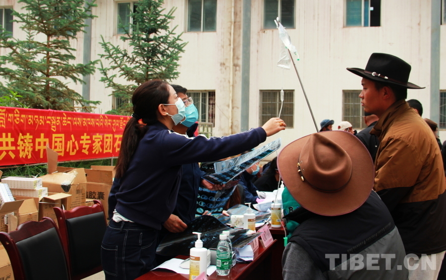 由于石渠縣海拔較高,參加義診的醫(yī)療專(zhuān)家們普遍發(fā)生頭暈、心悸等高原反應(yīng),有的血氧濃度甚至不到70%。在前往義診現(xiàn)場(chǎng)的車(chē)上還吸著氧的他們,見(jiàn)到這么多群眾排隊(duì)候診,顧不上身體不適,迅速投入到了診療工作中。