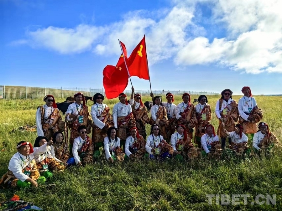 圖為青海省代表團在草原上獻(xiàn)歌《再唱山歌給黨聽》 攝影:王培宇
