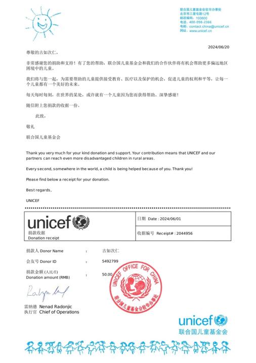 “之后的每個月我都會把省吃儉用節(jié)約下來的錢捐贈給聯(lián)合國兒童基金會,雖然每月捐贈的金額數(shù)不大,但我這幾年一直力所能及地堅持做著這件事。”古如次仁說,到大學(xué)后每月還有勤工儉學(xué)的收入,所以我會繼續(xù)堅持做這件事,能通過自己的方式幫助到貧困兒童非常有意義。