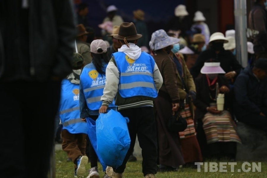 環(huán)保小衛(wèi)士們不怕臟不怕累,身著藍(lán)色小馬甲,手持清掃工具和垃圾袋“地毯式搜撿”,如同“藍(lán)精靈”在人群中穿梭,用實(shí)際行動感染著現(xiàn)場活動的所有參與者。在大家的共同努力下,經(jīng)過三個多小時的辛勤勞動,望果節(jié)現(xiàn)場的衛(wèi)生得到了明顯的改善。