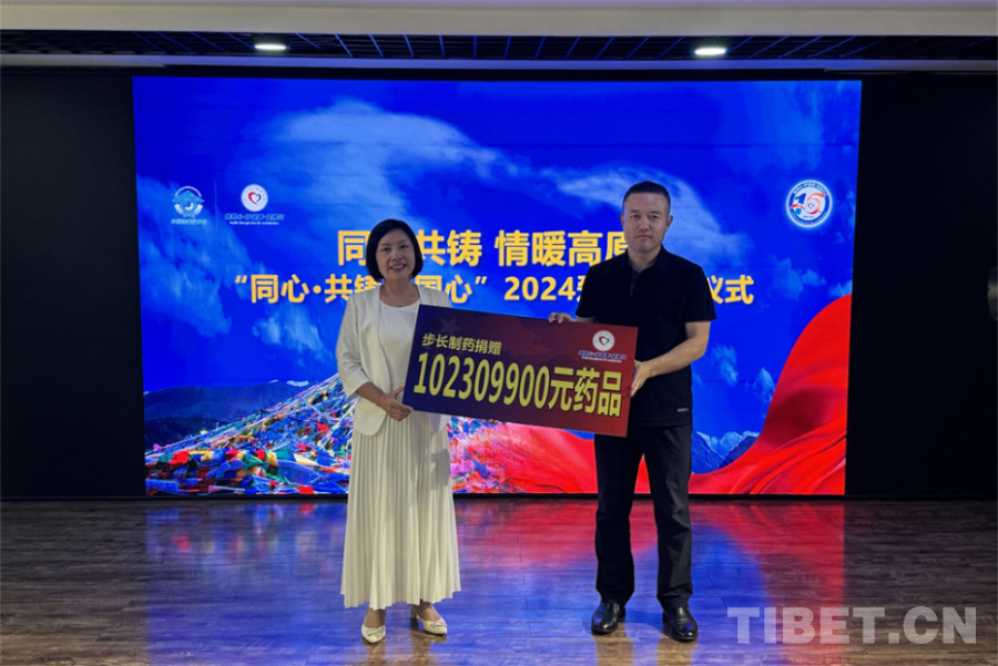 中國(guó)西藏網(wǎng)訊 8月5日,同心共鑄·情暖高原“同心·共鑄中國(guó)心”2024愛心捐贈(zèng)儀式在北京舉行。步長(zhǎng)制藥集團(tuán)通過北京同心共鑄公益基金會(huì)向西藏、四川、云南、甘肅、青海等地的17個(gè)地市州的148個(gè)縣,無償捐贈(zèng)呼吸道疾病防治藥——“宣肺敗毒顆?!?.78萬箱,共171.3萬盒,價(jià)值1.02億元。