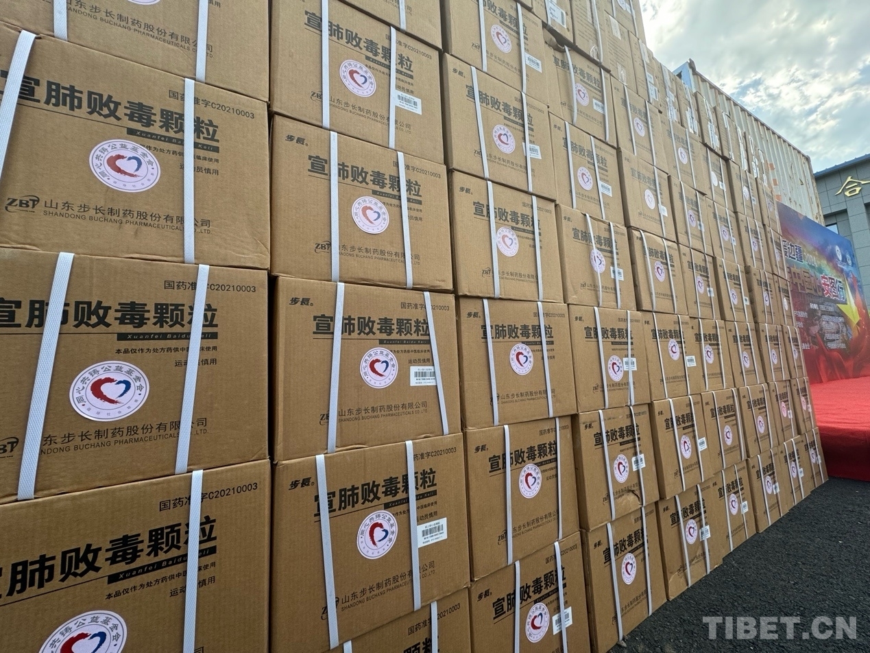 圖為2024“同心共鑄 情暖邊疆”——走進(jìn)安圖大型公益活動啟動儀式現(xiàn)場的捐贈藥品