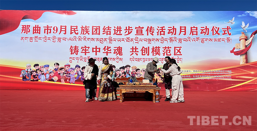 啟動儀式結束后,色尼區(qū)文藝團為現(xiàn)場觀眾獻上了那曲市民族團結進步主題歌曲《我們的和美羌塘》《羌塘普古》《國旗下的牧民》等一系列精彩的文藝表演。其中,《羌塘普古》以其別具特色的藏族舞蹈,展現(xiàn)了那曲高原的壯麗與人民的豪邁;小品《中華民族一家親》通過生動的故事情節(jié)和真摯的情感表達,深刻詮釋了中華民族多元一體的文化內涵和各民族之間血濃于水的深厚情誼?,F(xiàn)場笑聲不斷、氣氛活躍、熱鬧非凡,充分展示了那曲市民族團結進步的良好氛圍。(中國西藏網(wǎng) 記者/楊加才讓 旦曲)