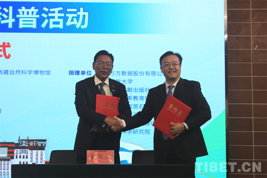 啟動儀式后,來自北京、江蘇、上海及西藏當(dāng)?shù)氐?家企業(yè)和機(jī)構(gòu)為計(jì)劃提供科普資源捐助。8家資源捐贈方代表與受贈方西藏自然科學(xué)博物館分別簽訂捐贈協(xié)議。
