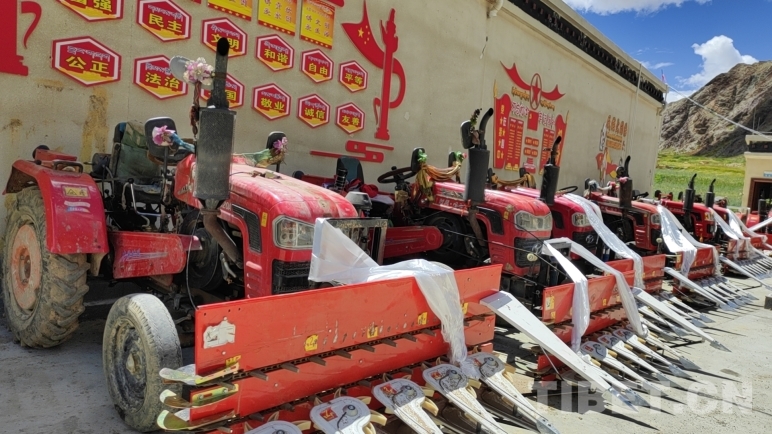 發(fā)放儀式當(dāng)天,拉隆村13戶村民代表來到現(xiàn)場,喜笑顏開,激動的心情難以言表。“真沒想到駐村工作隊(duì)能夠這么貼心地幫助我們,不僅捐贈了農(nóng)機(jī),還頂著大太陽下田幫我們收青稞,真是太感動,太感謝了!”村民石塔望著自己剛收過的青稞地,對駐村工作隊(duì)和村委會的同志們一再表示感恩和謝意。