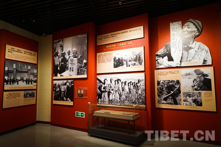 “西藏百萬農(nóng)奴解放紀念館日喀則分館”面積1165平方米,在西藏百萬農(nóng)奴解放紀念館展陳腳本的基礎上,適當融入了發(fā)生在日喀則大地上的民主改革等重大歷史事件,特別是融入了黨的十八大以來日喀則發(fā)展成就等內(nèi)容。展廳采用幻影成像技術(shù),生動再現(xiàn)“桑登分得土地”“桑登乞討圖”等新舊對比場景,全面集中反映了中國共產(chǎn)黨帶領西藏各族人民進行偉大民主改革,百萬農(nóng)奴翻身獲得解放的偉大歷史變革。