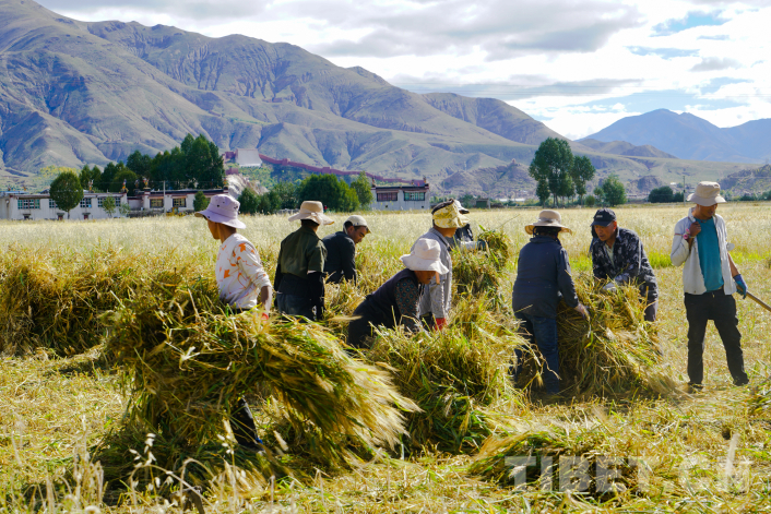 中國(guó)西藏網(wǎng)訊 金秋時(shí)節(jié),西藏自治區(qū)各地陸續(xù)迎來(lái)青稞的成熟與收割。世界青稞之鄉(xiāng)日喀則田間地頭到處是麥穗金黃、麥浪起伏,忙碌一年的農(nóng)民們開鐮收割,確保青稞顆粒歸倉(cāng),田間一派繁忙的收割景象。