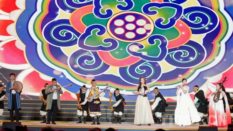 在“爭奇斗妍”篇中,珞巴族口弦、蒙古族馬頭琴,以及二胡、琵琶、竹笛等組成的新民樂組合輪番上演。由新疆喀什、和田的藝術(shù)家們帶來的、入選聯(lián)合國教科文組織“人類口頭和非物質(zhì)遺產(chǎn)代表作”名錄的新疆維吾爾木卡姆藝術(shù)更是讓現(xiàn)場的觀眾耳目一新。在篇章的結(jié)尾,由各民族演奏者們共同演繹的工布民歌,將現(xiàn)場氣氛推向高潮,也讓民族間的交往交流交融在所有人心中留下了具象、生動的畫面。