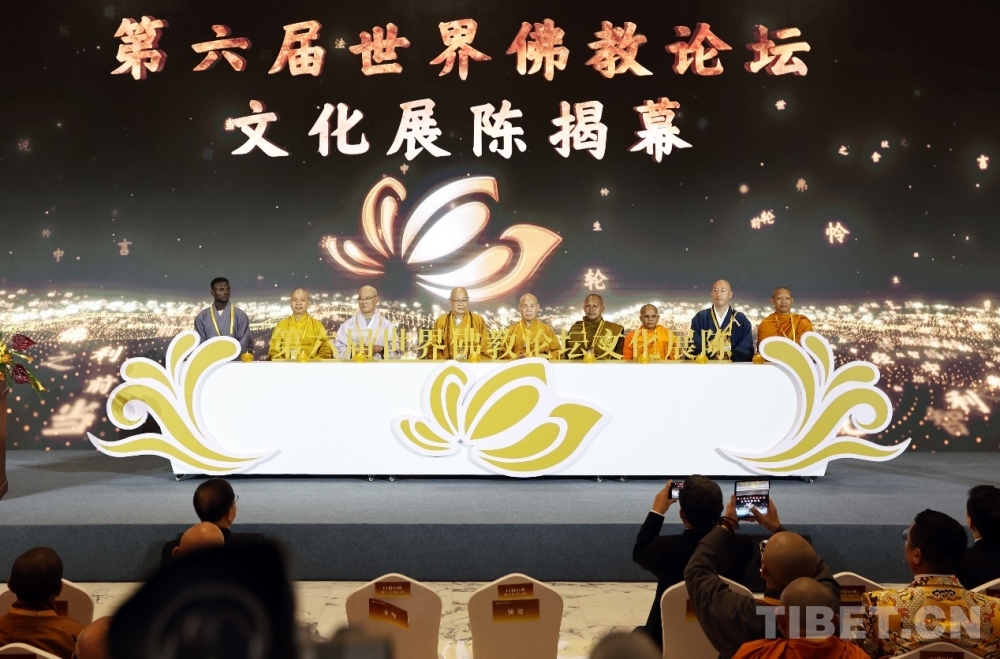 圖為第六屆世界佛教論壇文化展陳揭幕儀式在浙江寧波彌勒博物館舉行