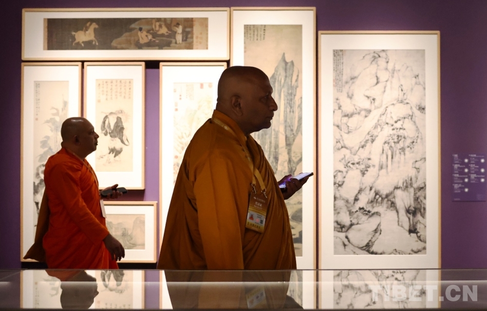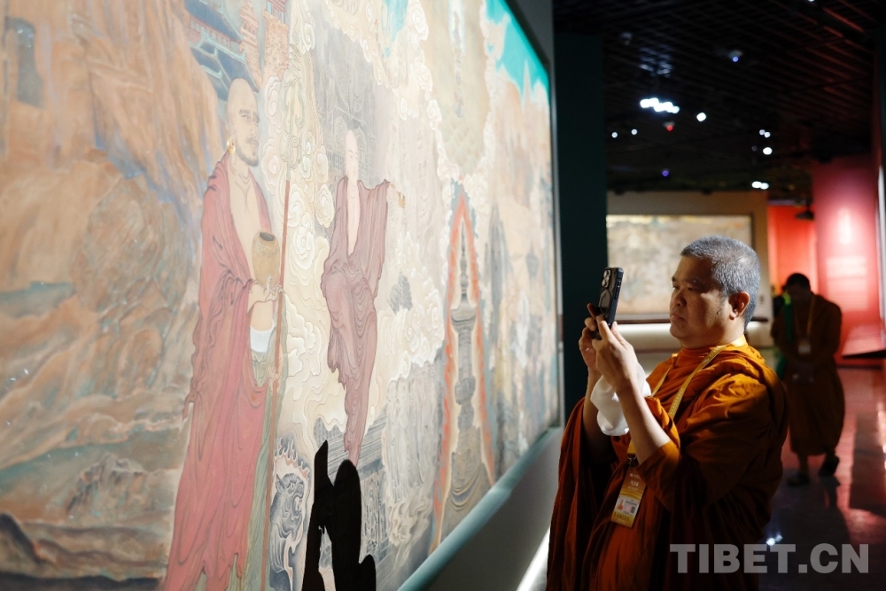 圖為與會(huì)者參觀“同愿同行——中國(guó)佛教傳承發(fā)展主題創(chuàng)作展”
