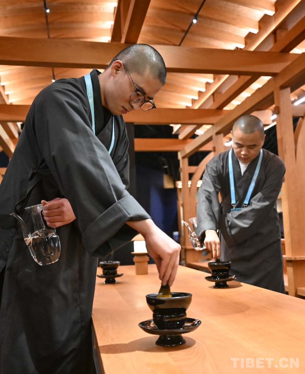 圖為與會(huì)者在“和合共生——世界佛教文化藝術(shù)展”上體驗(yàn)宋式點(diǎn)茶