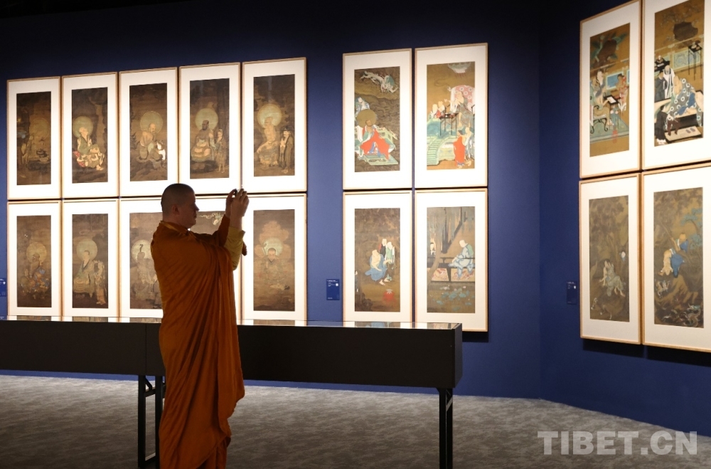 圖為與會(huì)者參觀“翰墨佛緣——‘中國(guó)歷代繪畫大系’佛教藝術(shù)珍品展”