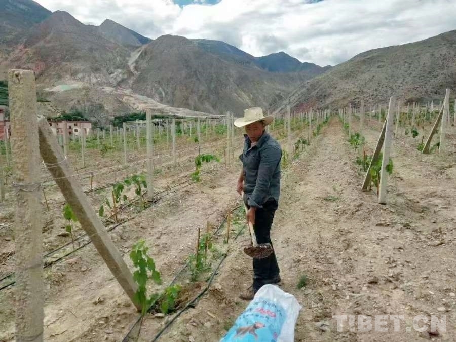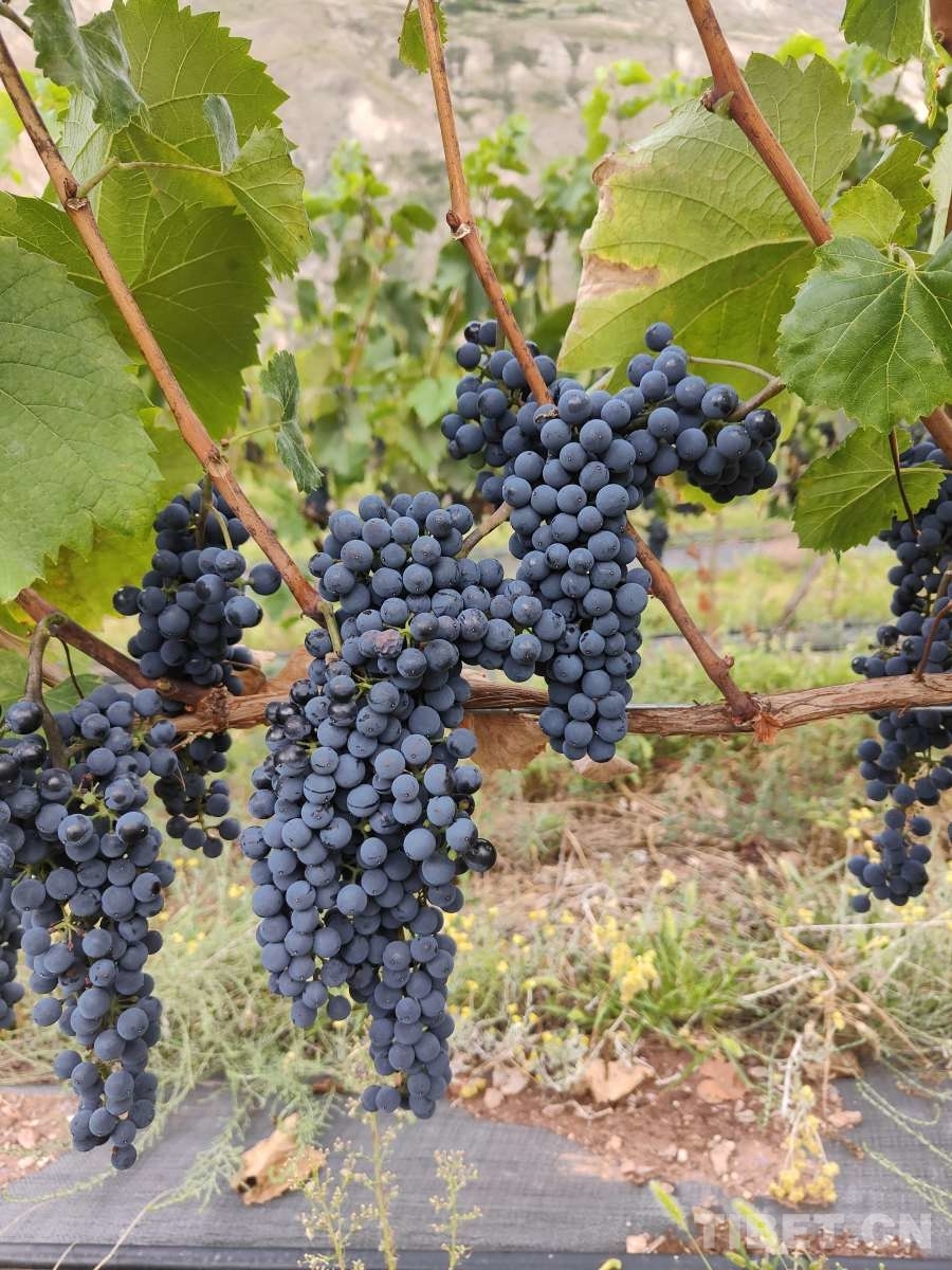 在風(fēng)景如畫(huà)的八宿縣林卡鄉(xiāng)孜嘎村,有一片占地面積200畝的葡萄種植基地,也是昌都市海拔最高的葡萄種植基地。2016年,八宿縣計(jì)劃建立葡萄種植基地,來(lái)自芒康縣納西民族鄉(xiāng)的次成江措在項(xiàng)目中標(biāo)后成為該基地的負(fù)責(zé)人。在次成江措的家鄉(xiāng)芒康,種植葡萄已經(jīng)有200多年的歷史。從小耳濡目染,使他成為遠(yuǎn)近聞名的葡萄種植專家。剛接到這個(gè)項(xiàng)目時(shí),由于對(duì)八宿縣地理環(huán)境不甚了解,次成江措內(nèi)心并沒(méi)有十足的把握。隨后,他從家鄉(xiāng)帶來(lái)優(yōu)質(zhì)葡萄品種“黑珍珠”,驚喜地發(fā)現(xiàn)得益于八宿縣海拔較高、紫外線充足、降雨量較少的優(yōu)勢(shì)條件,“黑珍珠”的生長(zhǎng)情況超出了他的預(yù)期,甚至不需要使用農(nóng)藥。
