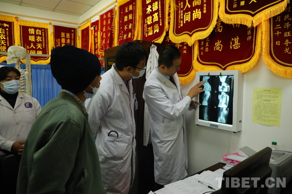 在骨科科室,同樣人潮涌動(dòng)。骨科疾病是當(dāng)?shù)匕傩盏囊淮罄_??剖覂?nèi)很多人圍著一位患者,他叫扎西能周,今年21歲,是阿壩職業(yè)學(xué)院的學(xué)生。醫(yī)生告訴他脊柱側(cè)彎已達(dá)60度,如果做手術(shù),將得到基金會(huì)的全力支持。扎西能周表示,這對(duì)他來說是一個(gè)福音,他可以重新開始新的生活。這一切都是為了阿壩人民的健康,在這里得到了完美的詮釋。