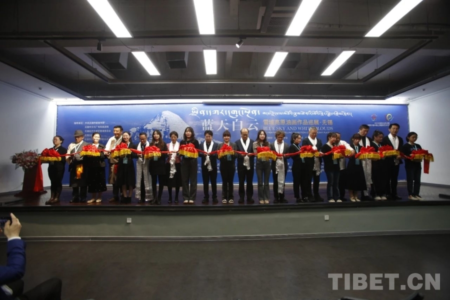 圖為“藍(lán)天白云——雪域高原油畫(huà)作品巡展”在江蘇無(wú)錫鳳凰藝都美術(shù)館舉辦