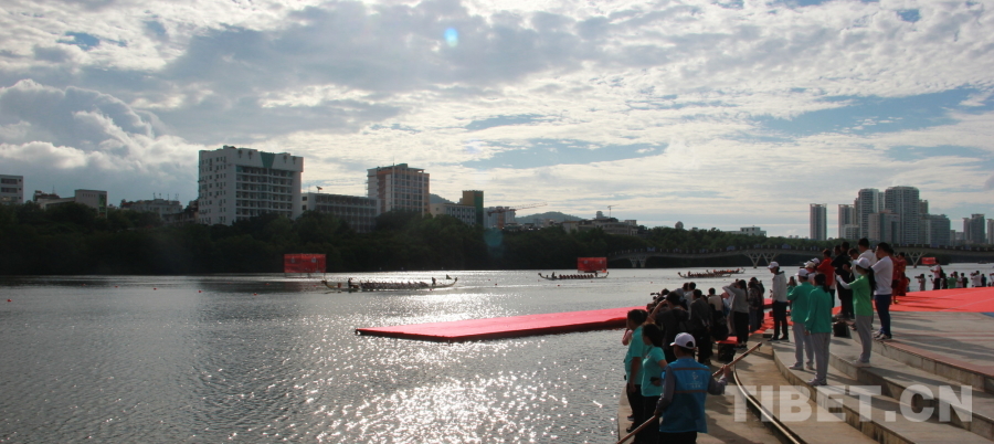 中國(guó)西藏網(wǎng)訊 11月23日,第十二屆全國(guó)少數(shù)民族傳統(tǒng)體育運(yùn)動(dòng)會(huì)(以下簡(jiǎn)稱運(yùn)動(dòng)會(huì))龍舟項(xiàng)目在海南省三亞市三亞河開(kāi)賽。