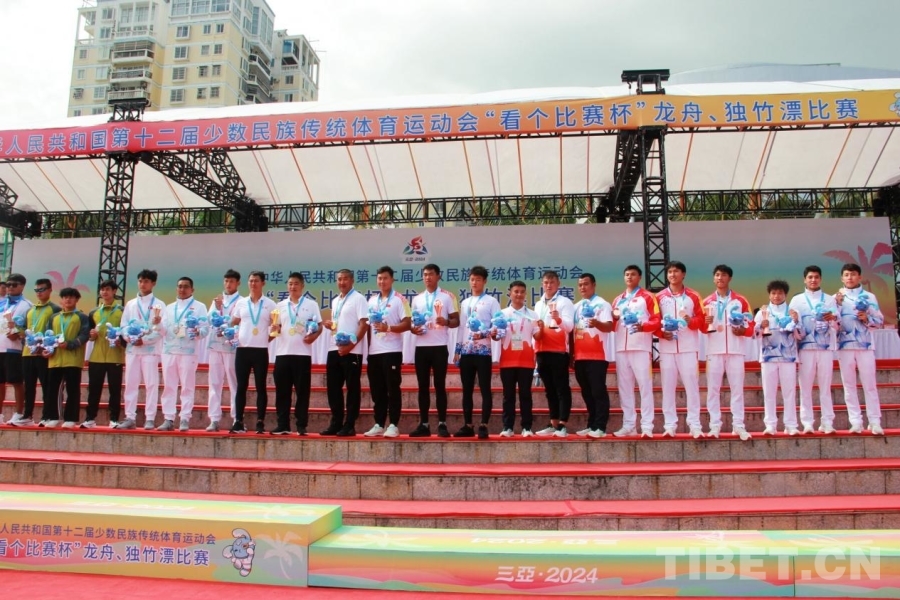中國(guó)西藏網(wǎng)訊 11月23日,第十二屆全國(guó)少數(shù)民族傳統(tǒng)體育運(yùn)動(dòng)會(huì)(以下簡(jiǎn)稱(chēng)運(yùn)動(dòng)會(huì))開(kāi)幕式后的首個(gè)一等獎(jiǎng)在龍舟項(xiàng)目中產(chǎn)生,貴州隊(duì)獲此殊榮。東道主海南隊(duì)在該項(xiàng)目中也奪得一項(xiàng)一等獎(jiǎng),贏得本屆運(yùn)動(dòng)會(huì)開(kāi)門(mén)紅。