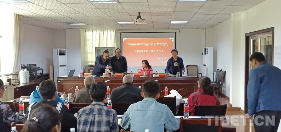圖為諾章·吳堅(jiān)先生在拉薩師范高等??茖W(xué)校講授傳統(tǒng)籌算法 邊貴供圖