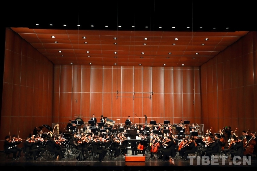 音樂會上,兩位藏族歌手演唱了交響樂主題曲《金橋》,歌曲高亢嘹亮、曲調(diào)悠揚(yáng)。藏戲、山歌等元素的加入,讓交響樂更加豐富,充滿了濃郁的民族風(fēng)情。